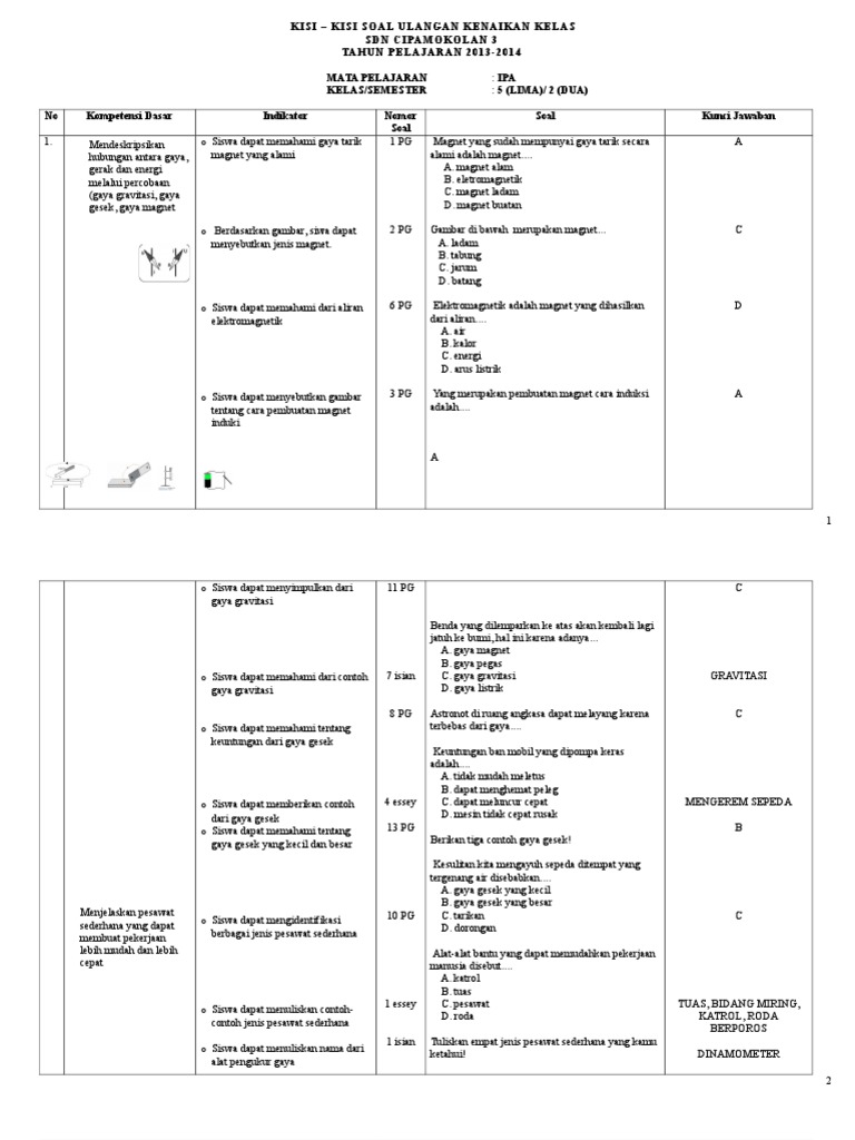 Kisi Kisi Soal Ukk Ipa Kelas 5 Smtr 2 1
