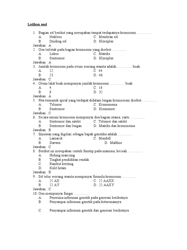 Latihan soal ini dapat membantu peserta didik kelas 9 SMPMTs dalam mempelajari materi Pewarisan Sifat. Friday January 16 2015. Pilihan Ganda Berilah tanda silang X pada jawaban yang paling tep.